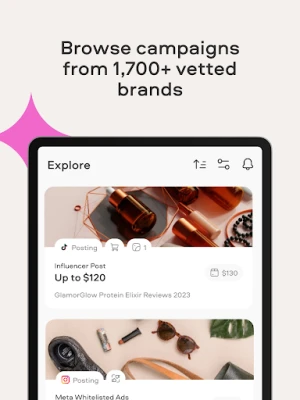 - Get actively promoted by us — We are helping you build an attractive creator profile, making it easy for brands to discover you. Build your portfolio within the app, earn qualified - badges, and receive ratings from brands to boost your visibility.